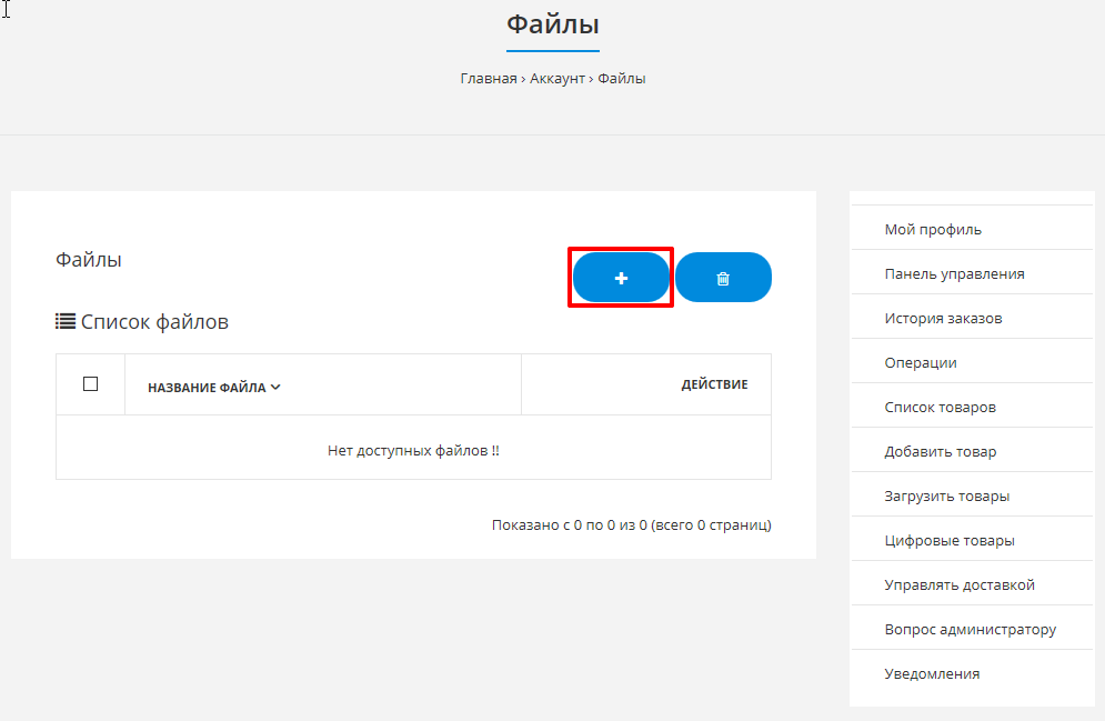 Продажа цифровых товаров (файлов, кодов, доступов) немного отличается от обычных. Сначала мы создаем «Загрузку» (сам файл), а потом привязываем её к товару. В меню личного кабинета выберите пункт «Цифровые товары».Добавление цифрового товара в FullBag