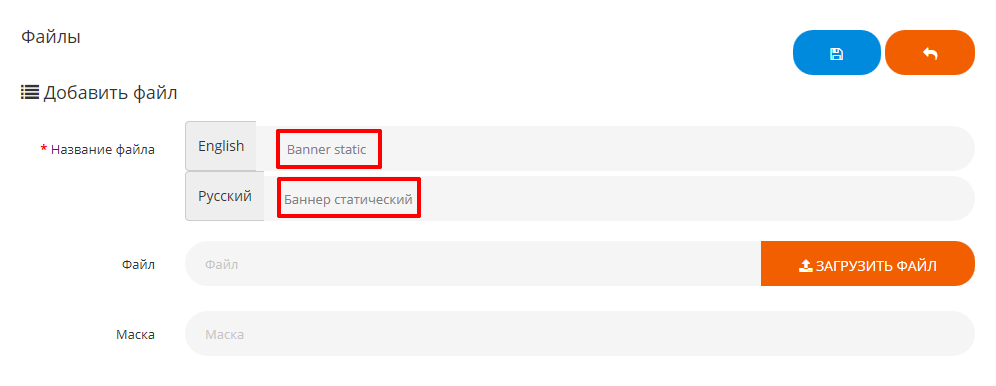 Заполните название файла. Система попросит описание на русском и английском языках.