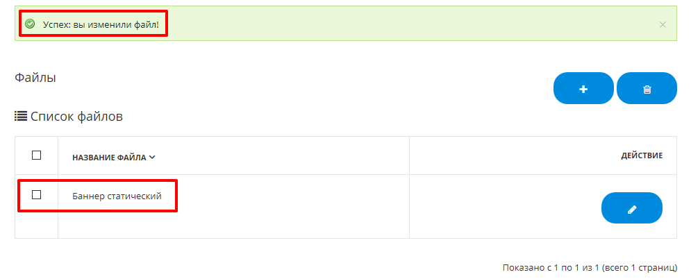 Чтобы добавить новый файл, нажмите кнопку «+».