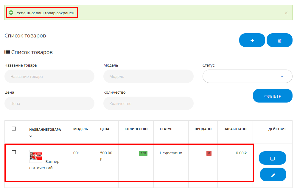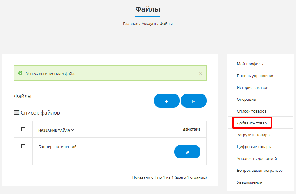 Теперь нужно сделать так, чтобы покупатель увидел ваш товар. В меню выберите «Добавить товар».