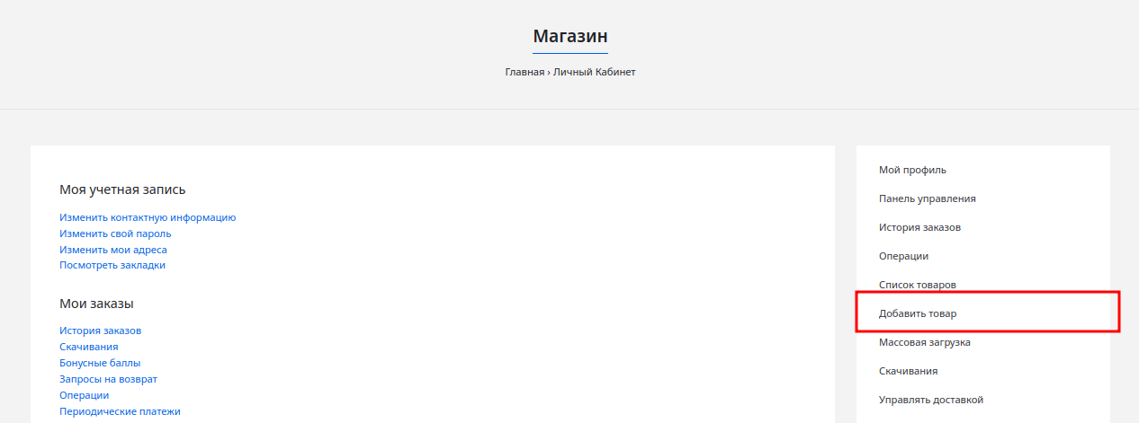 В личном кабинете поставщика FullBag выберите в меню пункт «Добавить товар».