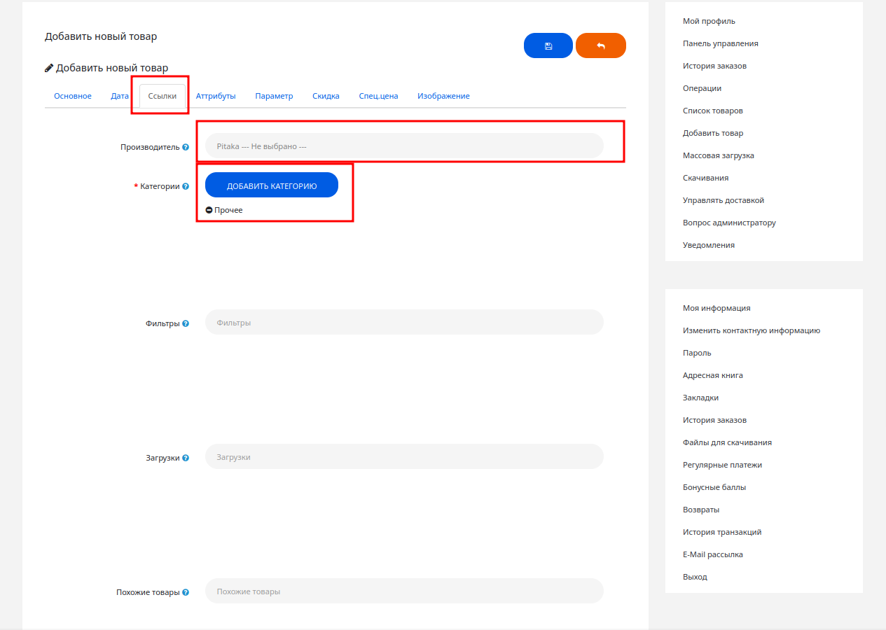 Укажите производителя и выберите подходящую категорию. Если вы не нашли нужную категорию — напишите нам, мы её добавим!4. Вкладка «Ссылки» (Категории)