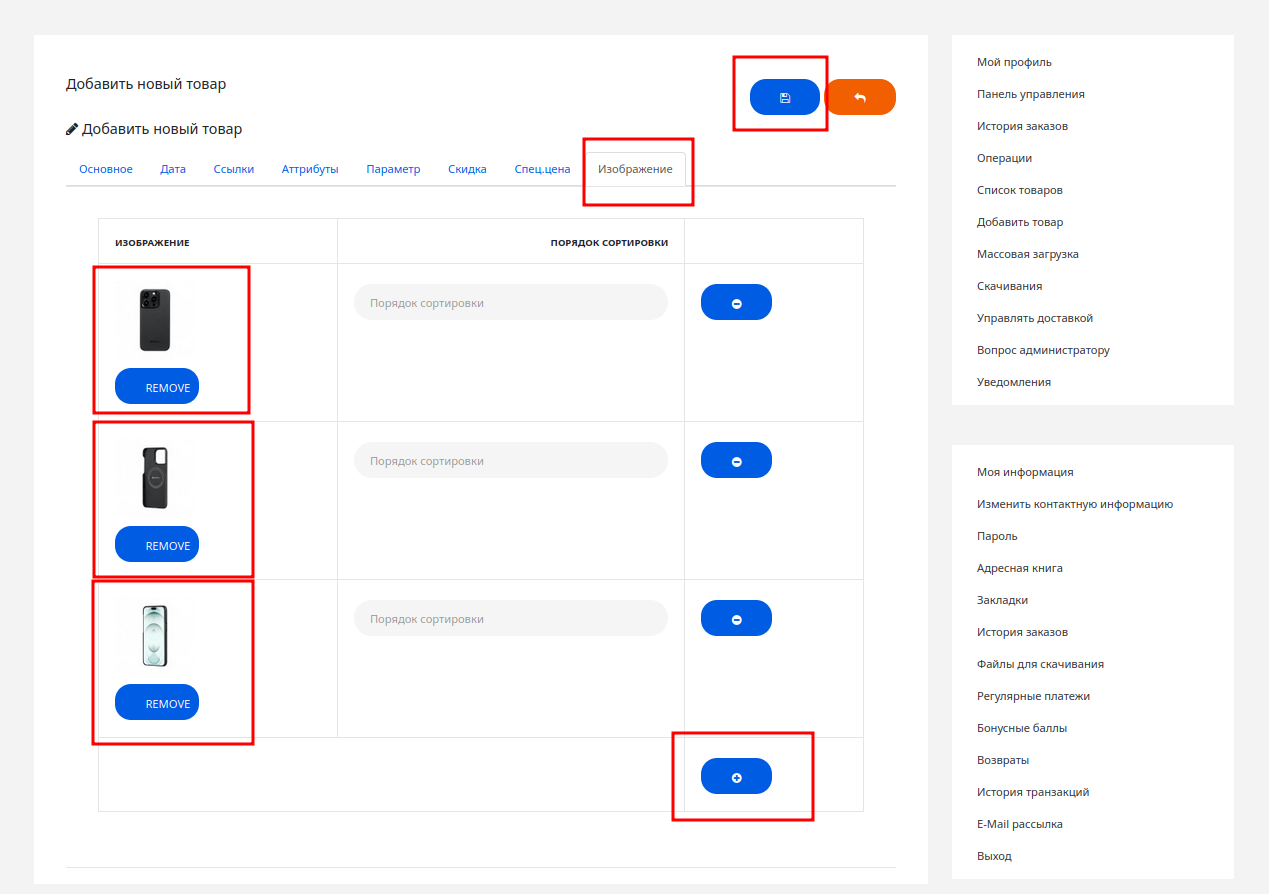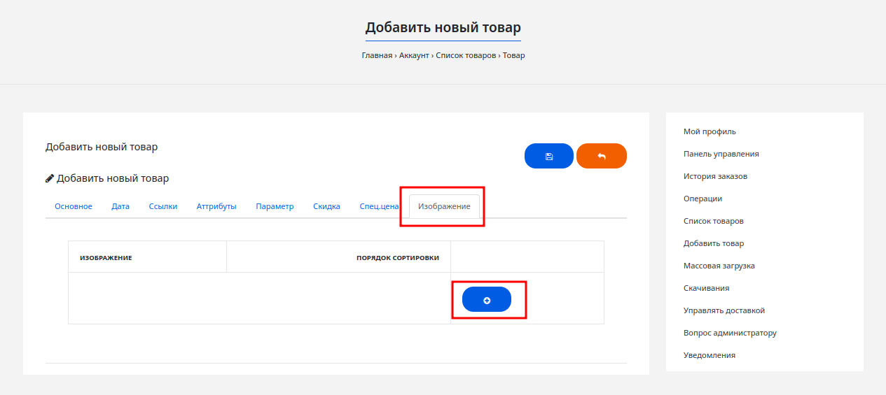 Примечание: вкладки «Атрибуты», «Скидки» и «Спец.цена» помогут вам точнее настроить маркетинг и складской учет, но для первого запуска их можно оставить «на потом». Покупатели любят глазами. Перейдите на вкладку «Изображение». Нажмите на кнопку «+», чтобы создать строку, а затем кликните на картинку-заглушку, чтобы выбрать свое фото.5. Загрузка изображений