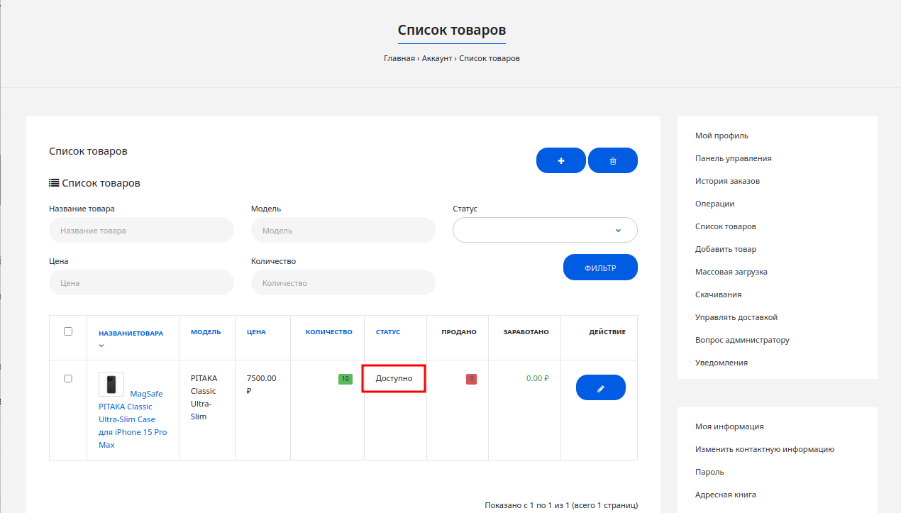 Как только статус изменится на «Доступно» — товар официально в продаже!