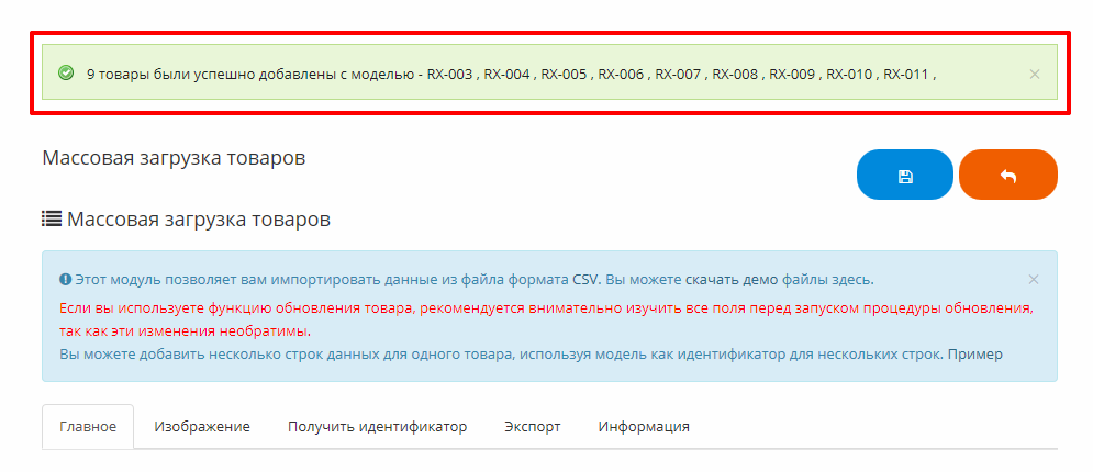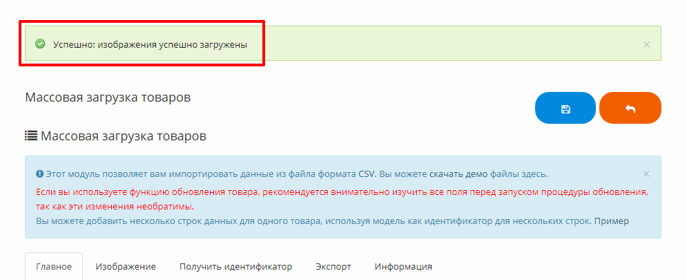 Данные о товарах уже в системе, теперь добавим картинки. Чтобы не загружать их по одной: