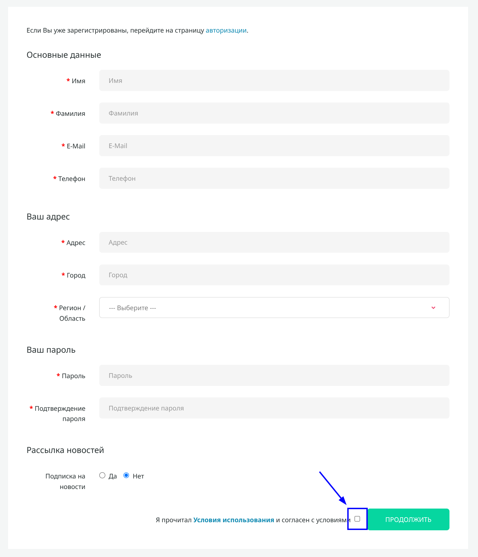 - Если вы новый пользователь, заполните все обязательные поля. Это стандартная процедура, чтобы мы знали, как к вам обращаться.